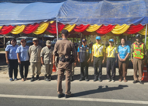 พ.ต.ท.สถาพร สงวนสุข สวญ.สภ.เพี้ยราม, พ.ต.ท.พิทักษ์ ไชยราช สวปฯ พร้อมตำรวจจิตอาสา,เจ้าหน้าที่สายตรวจจราจร ร่วมกับ จนท. สาธารณสุข , อปพร. ,ฝ่ายปกครอง, จนท.อบต.เพี้ยราม ปฏิบัติหน้าที่ให้บริการประชาชนอำนวยความสะดวกด้านการจราจร มอบน้ำดื่ม ประชาสัมพันธ์เมาไม่ขับและรณรงค์การขับขี่ปลอดภัย สวมหมวกนิรภัย เพื่อลดอุบัติเหตุในห้วงเทศกาลปีใหม่ พ.ศ.2568 ณ จุดบริการประชาชนหน้า อบต.เพี้ยราม อ.เมืองสุรินทร์ จ.สุรินทร์