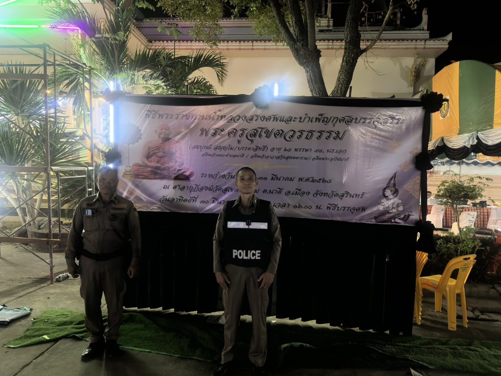 ร.ต.ท.ปราสาท สายน้อย รองสว(ป.)สภ.เพี้ยราม ปฏิบัติหน้าที่ร้อยเวร 20 ประจำวันนี้ พร้อมสายตรวจ ว.10 ดูแลความสงบเรียบร้อย ในงานพิธีพระราชทานนํ้าหลวงสรงศพ พระครูสุเขตวรธรรม พร้อมดูแลตรวจสอบความเรียบร้อยบริเวณรอบๆพื้นที่ ณ วัดสุเขตตาราม ต.นาดี